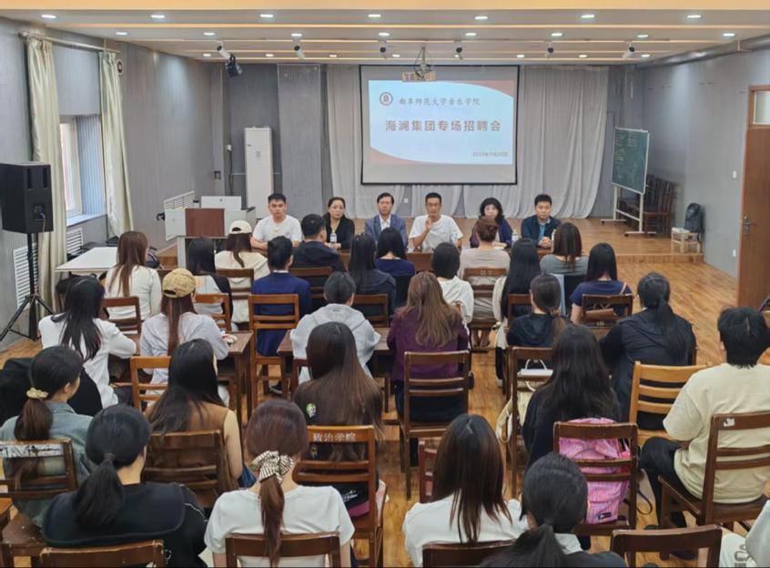 海澜集团专场招聘会在音乐学院日照校区203实训室举办。学院领导班子、学团工作人员及百余名毕业生到场参加,现场气氛热烈。