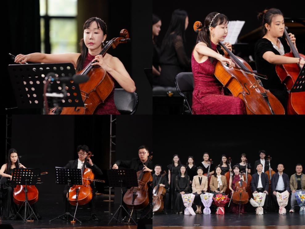 10月18日下午,韩国水原大学音乐学院金英恩院长领衔献演了大提琴独奏音乐会。音乐会现场,她先后演绎了古典名曲《Widmung (Dedication) Op.25 No.1》、现代作品《Julie-O》等曲目。尾声阶段,金英恩院长携手我院青年教师江俊豪及学生代表,共同献演中国传统经典作品《梁祝》,以悠扬的旋律为校庆活动增添了浪漫底蕴。