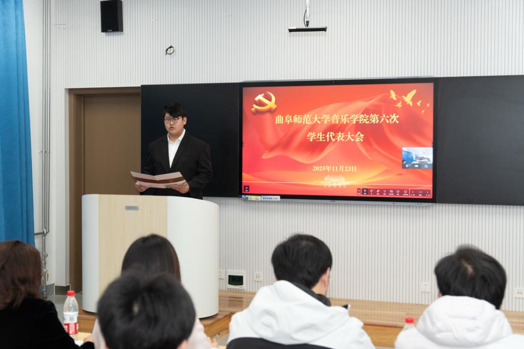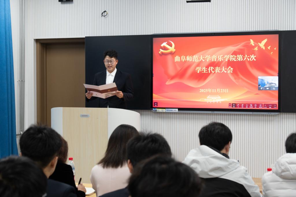 大会听取了学院2024届学生会主席朱炳辉所作题为《执乐笃行担责奋进,守心筑梦聚力前行》的工作报告。与会代表对工作报告进行了充分讨论并表决通过了《曲阜师范大学音乐学院第六次学生代表大会关于2025届学生会工作报告的决议》(草案)。